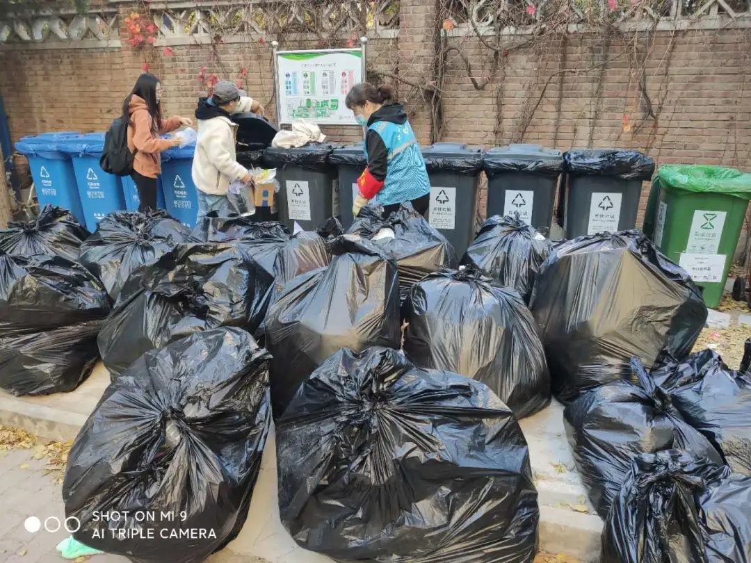 但是还会有少部分同学趁我们晚上不值守时才来扔垃圾,这就导致我们第二天早上的工作量特别大。因为我们分得特别细,第二天都要亲自动手。所以希望每个同学都能够在行动上更加积极地支持我们。