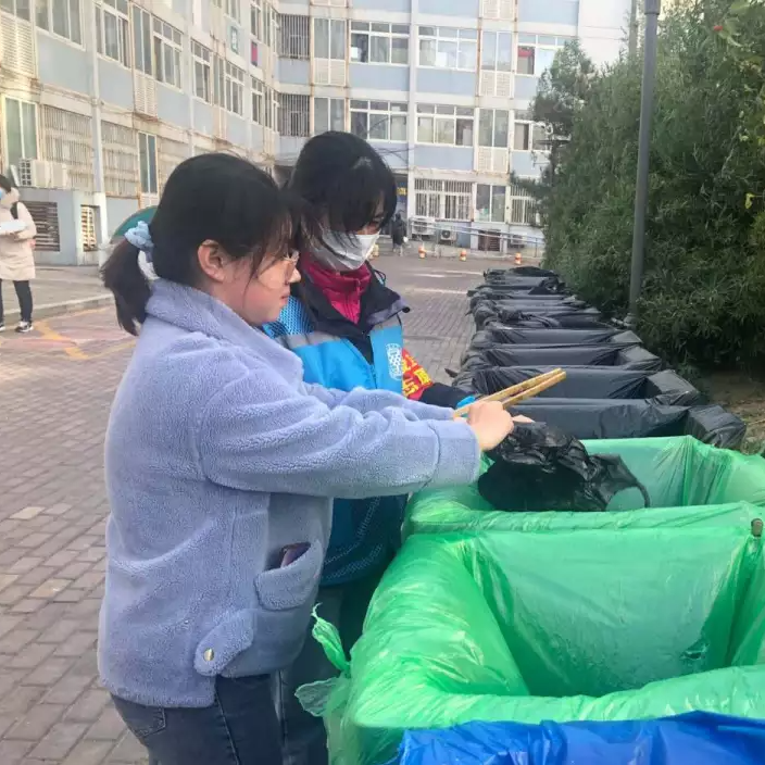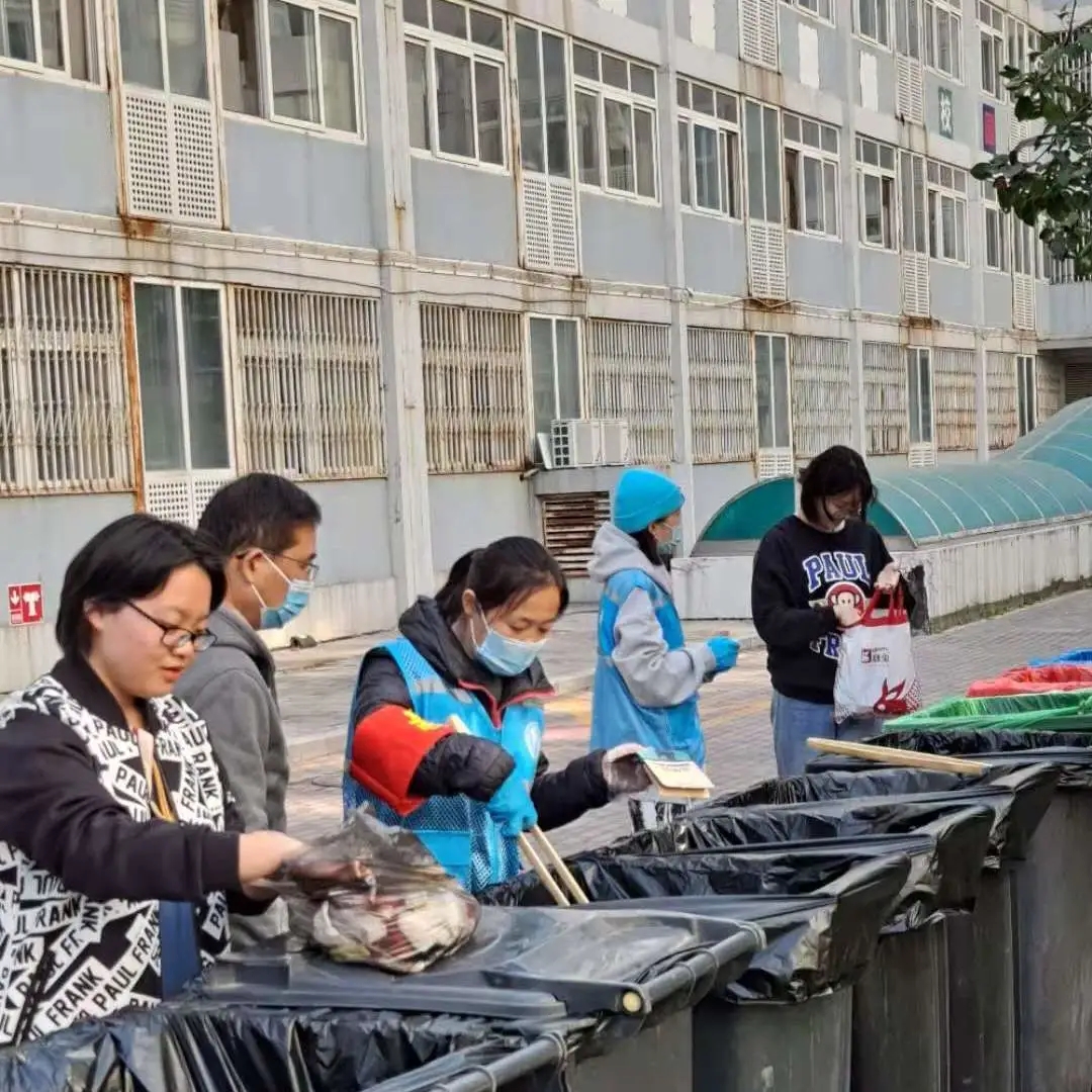 桶前值守工作开始后,我们坚持每次都给来扔垃圾的同学进行讲解,还有不少学生志愿者加入我们,协助我们进行垃圾分类的工作,效果就好多了。现在同学们垃圾分类的意识增强,基本没有什么很大的困难了。