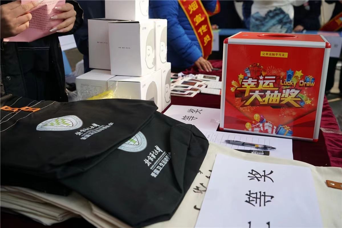 活动现场,工作人员为前来参与活动的师生发放控烟宣传册,大家凭借着日常所学习的控烟知识进行答题,根据答题结果参与抽奖,按名次领取活动纪念品。