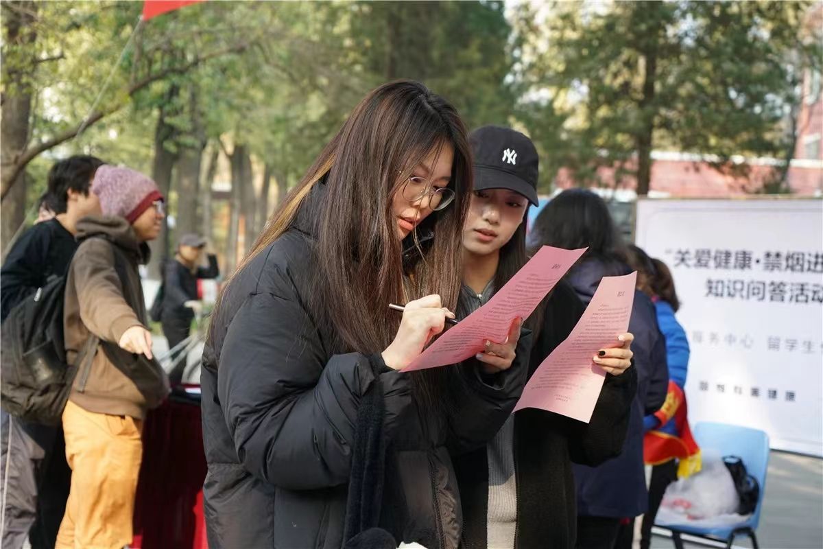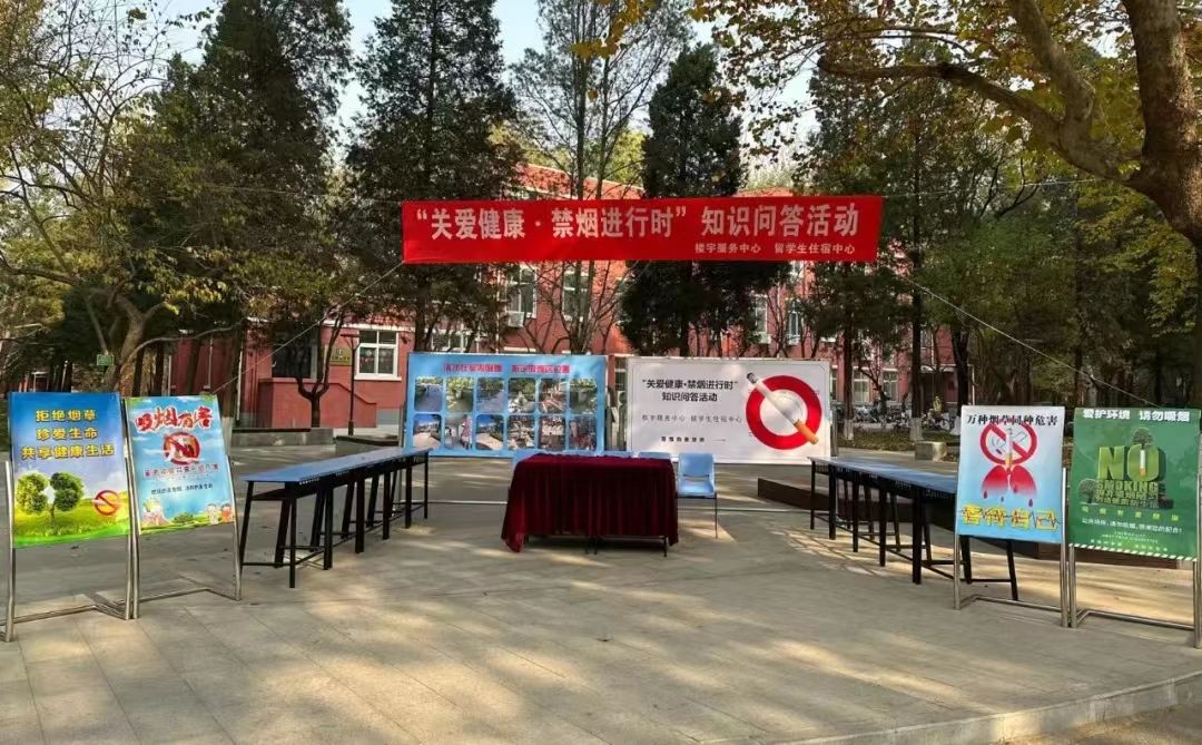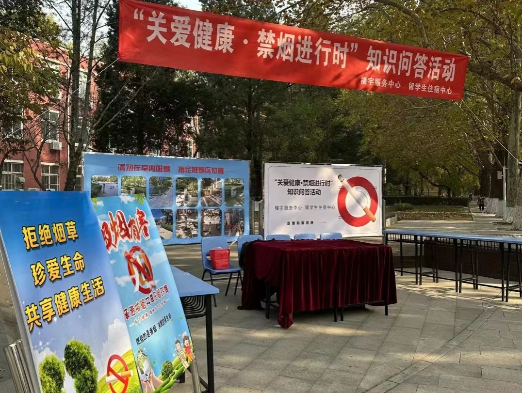 为加大控烟宣传力度,加强学校师生禁烟意识,维护师生身心健康,11月21日中午,楼宇服务中心联合留学生住宿中心在教五楼十字路口处开展“关爱健康·禁烟进行时”知识问答活动。校党委常委、副校长黄益方、后勤集团领导班子成员和部分师生一起参加了本次活动。
