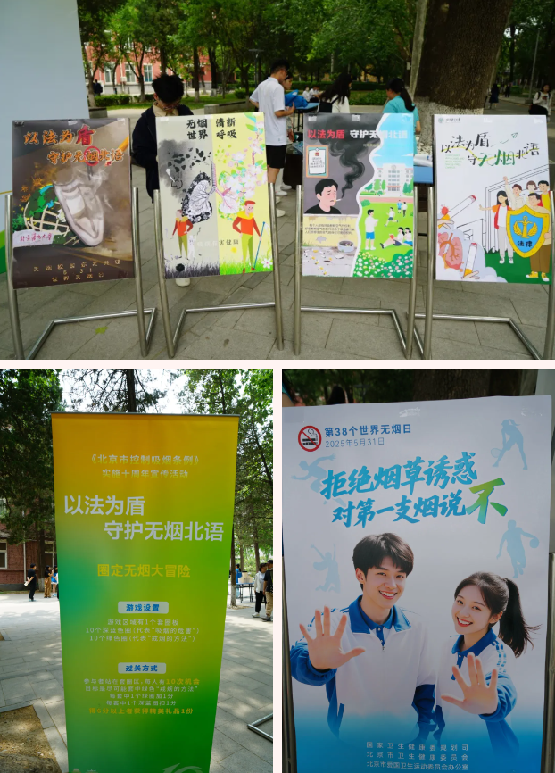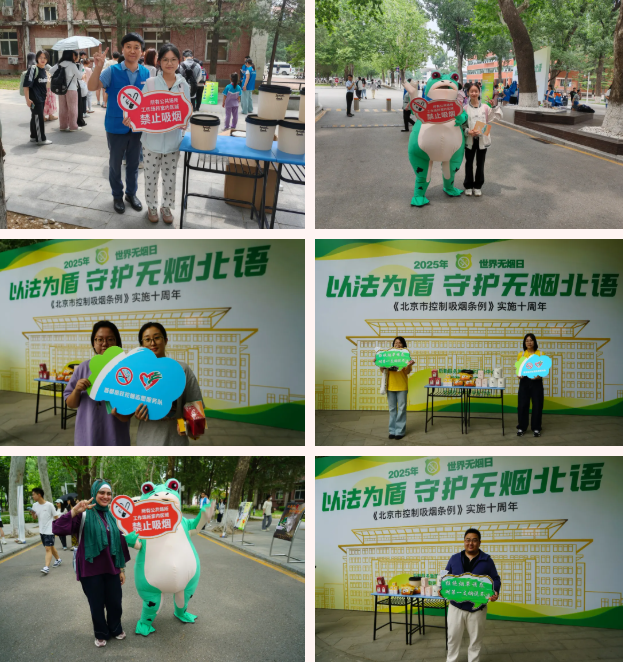2025年是《北京市控制吸烟条例》实施十周年,在第38个“世界无烟日”到来之际,5月30日中午,后勤集团楼宇服务中心党支部联合后勤集团第一党支部、澜阁社区、北语红十字会学生分会开展了以“以法为盾 守护无烟北语”为主题的控烟宣传活动。
